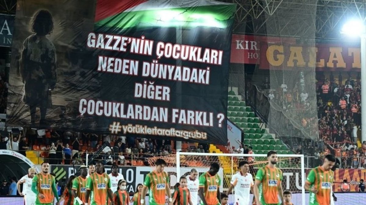 Alanyaspor taraftarlarının açtığı pankartta “Gazze’nin çocukları neden dünyadaki öbür çocuklardan farklı?” tabirleri yer aldı. Bu pankartla birlikte Alanyalı futbolseverler, İsrail’in Gazze’de sürdürdüğü akınlara, işgale ve yaşanan insanlık dramına reaksiyon gösterdi.